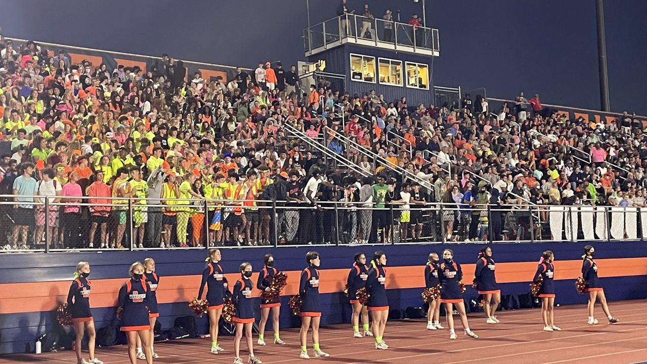 The fans were packed in on both sides of the stadium, but on the home side, the student section was wearing neon colors for the occasion.