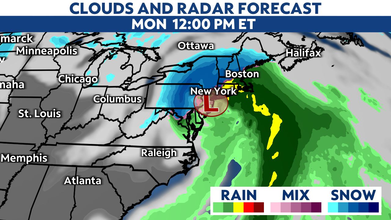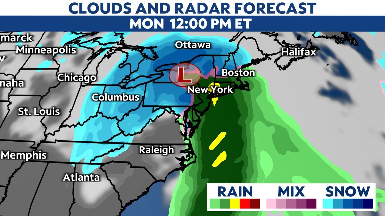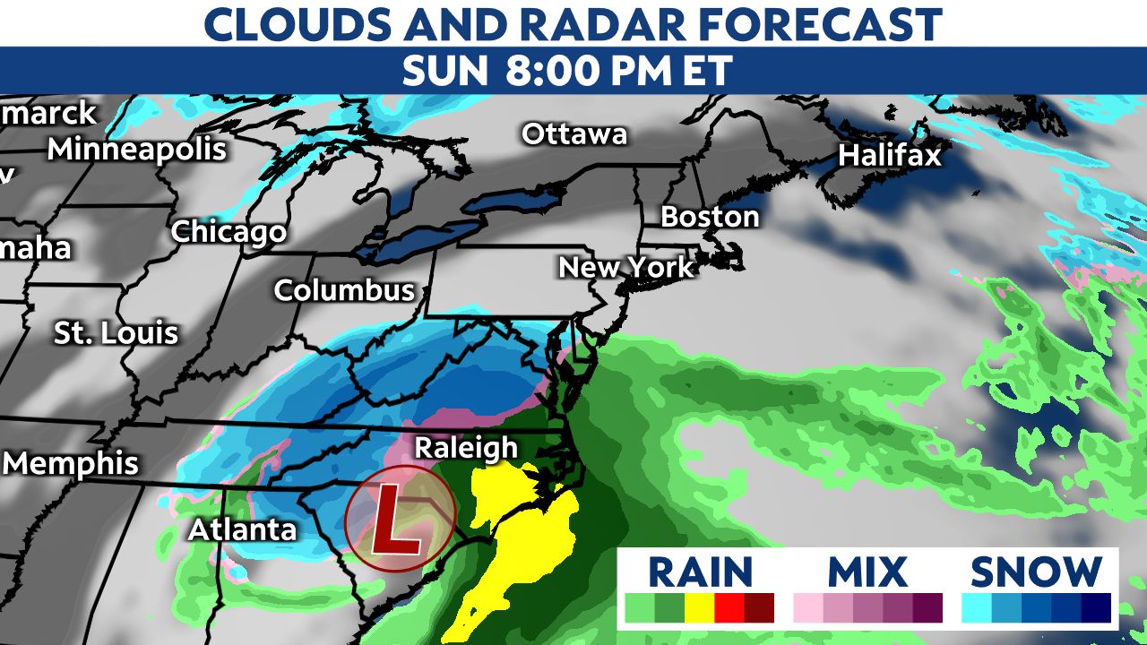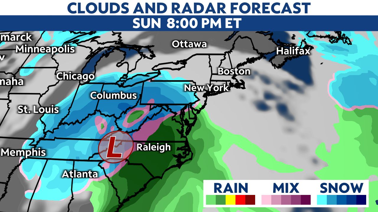 Temperatures will be cold enough to support areas of snow and possibly a wintry mix in the transition area to rain. That would affect parts of the Carolinas up into the Northeast.