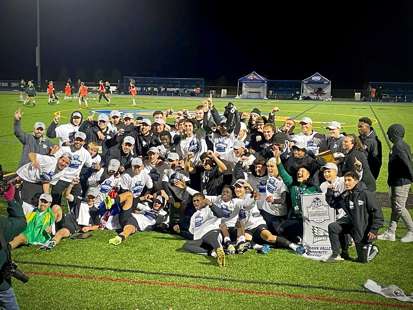 The MVCC Men’s Soccer Team won its first national championship in program history after defeating six-time defending champions Dallas Richland 2-1 on Sunday, Nov. 17, during the NJCAA Division III Men’s Soccer Championship hosted by Genesee Community College in Batavia, N.Y.