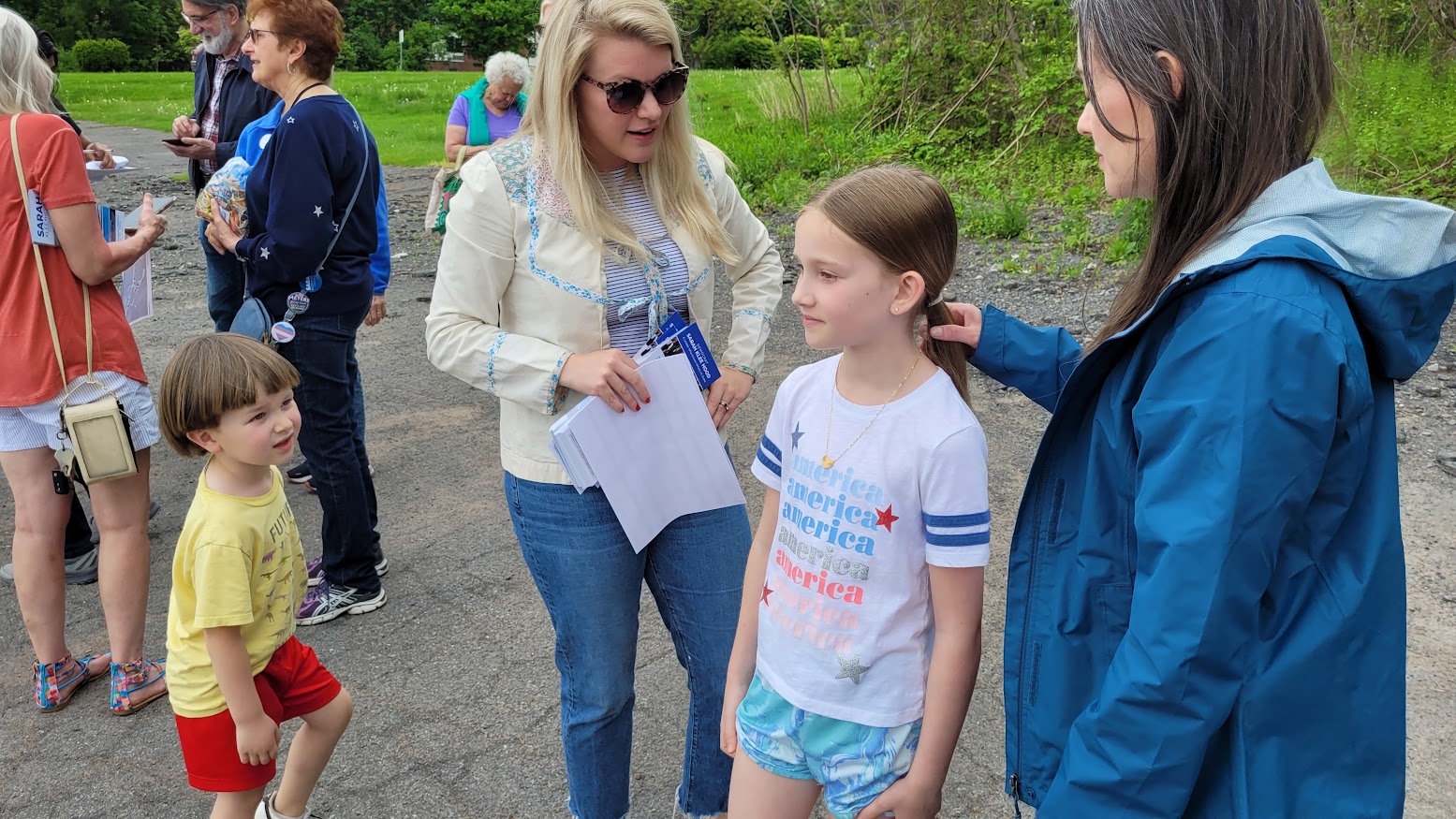 @ronklopfanstein Sarah Klee Hood, Democratic candidate for #NY22 connecting with a young supporter. #SarahKleeHood #DemocraticPrimary #HotSeatMediaMonday #RonKlopfanstein