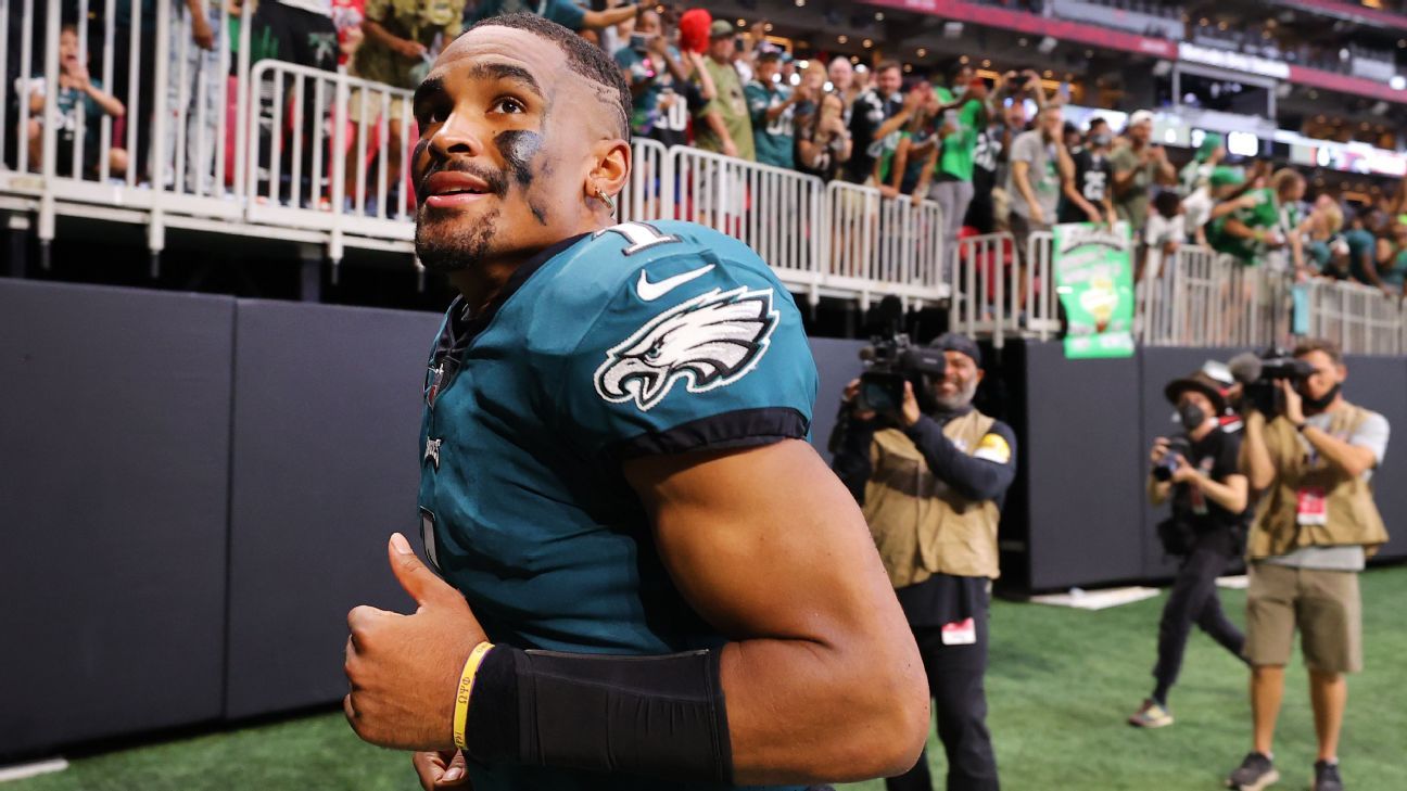 “He’s the leader,” said Eagles wide receiver DeVonta Smith, who finished with six catches for 71 yards and a touchdown in his NFL debut. “When things go wrong, he’s the guy that’s picking everybody up. When things are right, he’s the one telling us, ‘Keep pushing.’ Him and the offensive line, they’re the ones that are going to lead the team, and that’s what they did.”