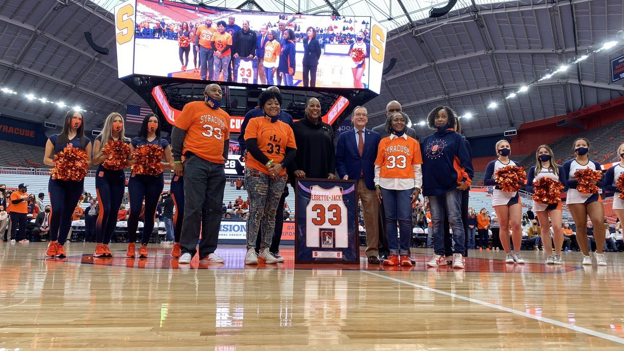 Felisha Legette-Jack went from growing up in the shadow of Syracuse University, to being a staple on campus. On Sunday, the Nottingham product made history, becoming the first woman ever at Syracuse to have her jersey retired.