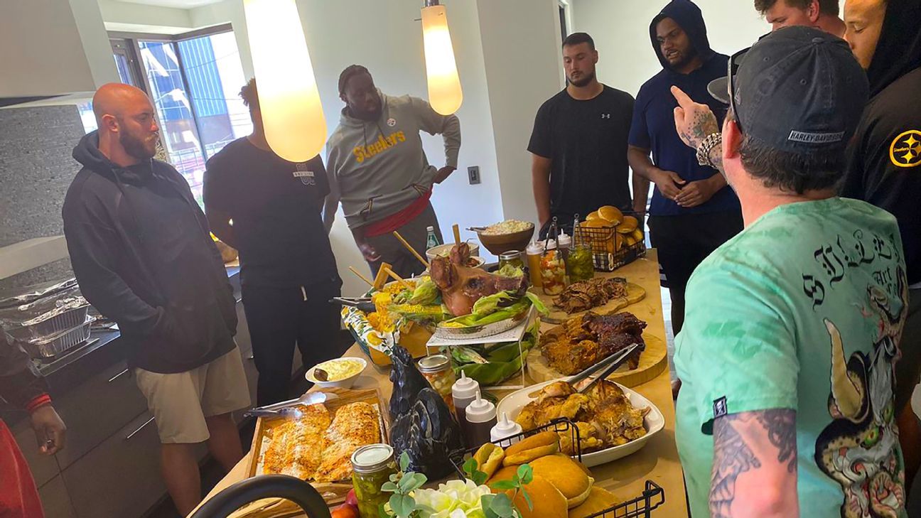 At Pittsburgh’s dinners, tackle Alejandro Villanueva, now with Baltimore, drew plenty of laughter when piling his plate high with overlapping foods: brisket on top of chicken on top of mac and cheese on top of green beans with barbecue sauce drizzled over the mound.